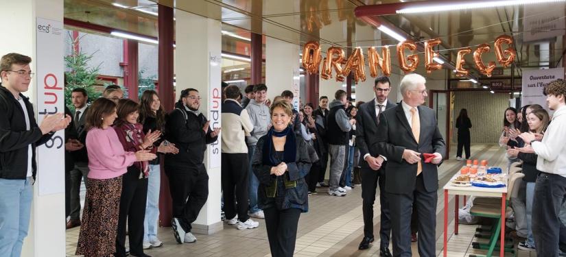 S.A.R. la Grande-Duchesse s’est rendue au Lycée – École de Commerce et de Gestion (ECG) pour parler de ses engagements humanitaires et sociaux, notamment avec Stand Speak Rise Up!, à l’occasion d’une conférence dédiée aux élèves.