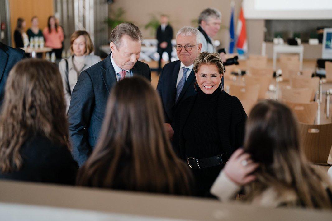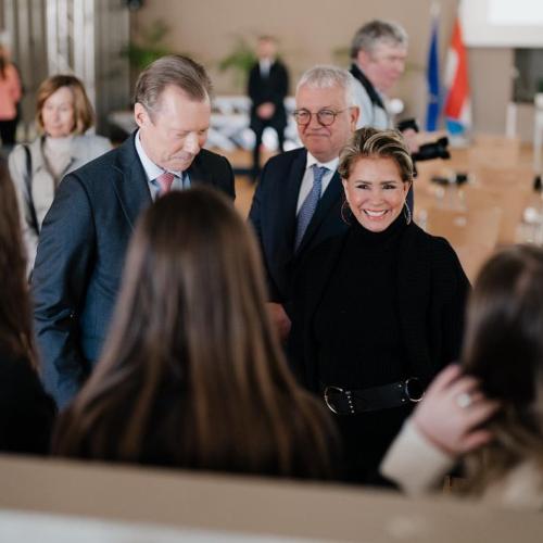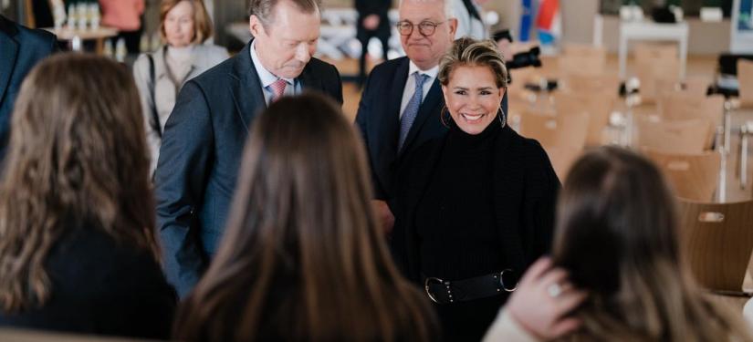 S’intéressant de près aux enjeux et défis de l’éducation au Luxembourg, LL.AA.RR. le Grand-Duc et la Grande-Duchesse ont partagé, ce mardi, une matinée avec les élèves du « Maacher Lycée », situé à Grevenmacher et qui accueille près de 1.220 lycéens.
