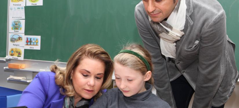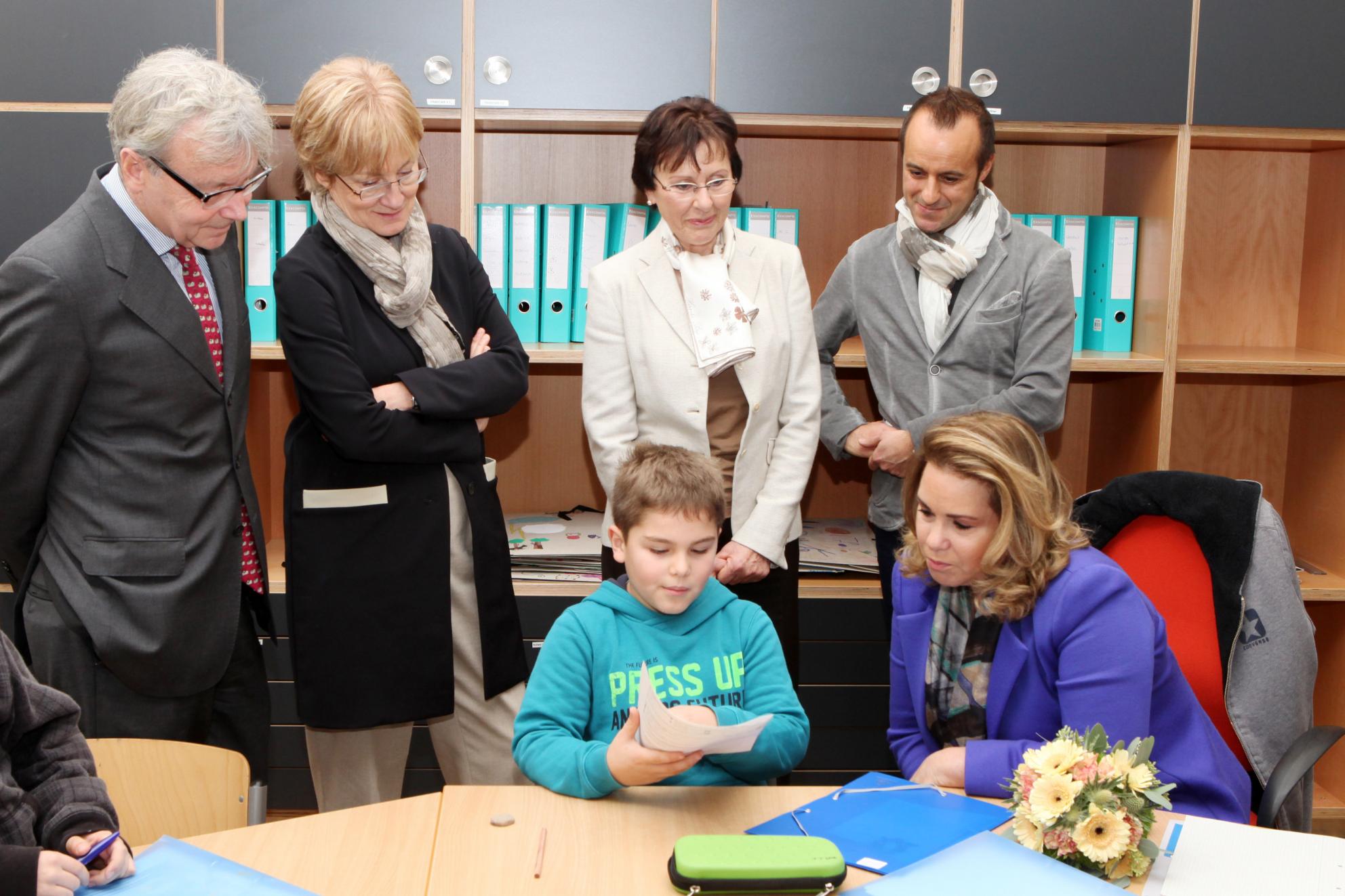 Lors de la visite de l’école, S.A.R. la Grande-Duchesse a rencontré les enfants, les éducateurs et les enseignants de différents cycles tout en participant à divers ateliers. S.A.R. la Grande-Duchesse s'est également prêtée au jeu des "questions-réponses" animé par les écoliers en charge de la rédaction du journal de l’école.