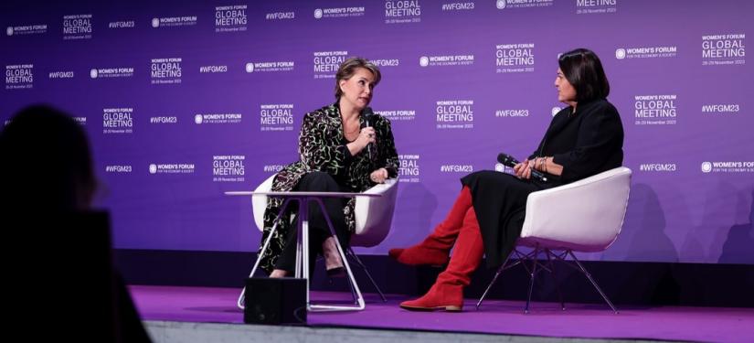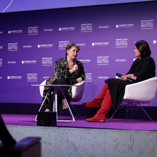 Elles ont ensuite échangé avec la Présidente du Women’s Forum, Anne-Gabrielle Heilbronner, grâce à qui cette plateforme internationale d’influence existe, mettant en lumière les nombreuses voix des femmes engagées pour un monde plus inclusif.